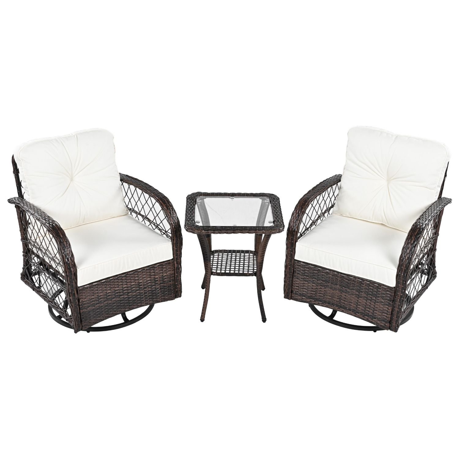 Swivel Chairs for Flexible Seating - Each chair in this outdoor set features a smooth, 360-degree swivel function, allowing for easy movement and flexibility. You can effortlessly change your seating position, whether you want to enjoy different views or engage in conversations without moving the chairs.